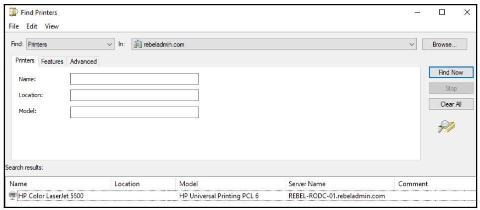 В соответствующей рабочей станции в процессе настройки такого принтера нам требуется выбрать необходимый вариант для перечисления принтеров из своего каталога чтобы увидеть все интегрированные с AD принтеры: