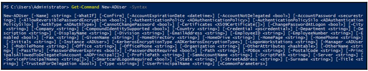 Get-Command New-ADUser -Syntax