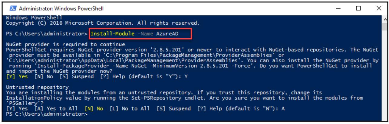 Группы Azure AD также работают схожим с локальными для AD группами образом. Их можно применять для управления полномочиями действенным способом. В некой гибридной среде будут иметься группы, применяемые только в облаке, а также группы, синхронизируемые с окружением AD локальной площадки. В этом разделе мы намерены рассмотреть управление группой при помощи модуля Azure Active Directory PowerShell for Graph.