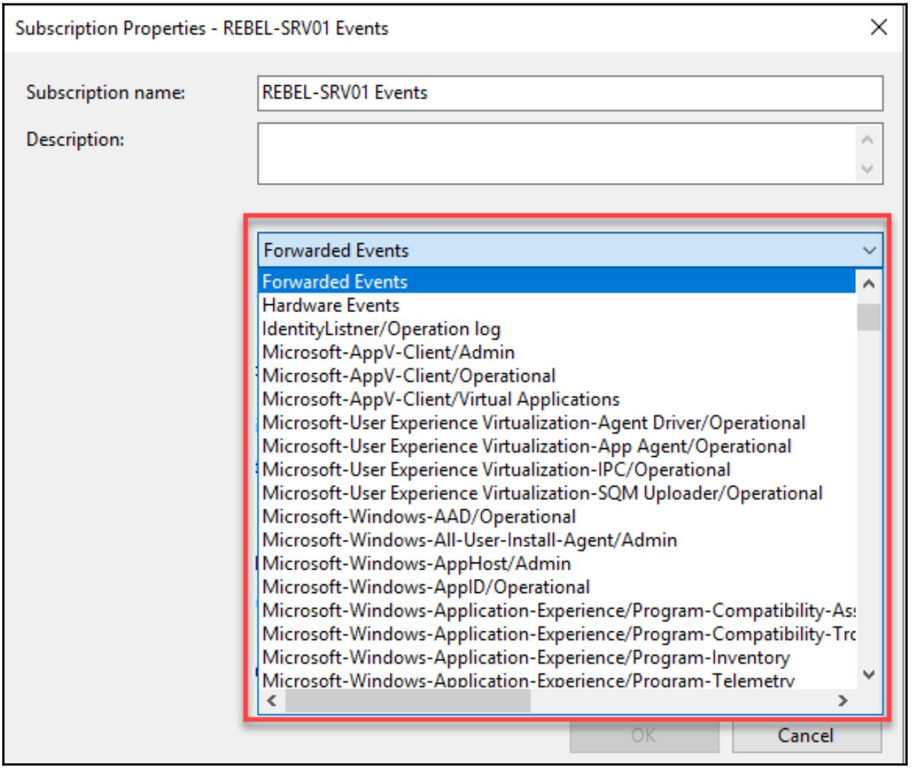 Forwarded Events это установленное по умолчанию местоположение для активной доставки событий подписки. Тем не менее, если требуется, эти события также могут переправляться в иные файлы журналов. |