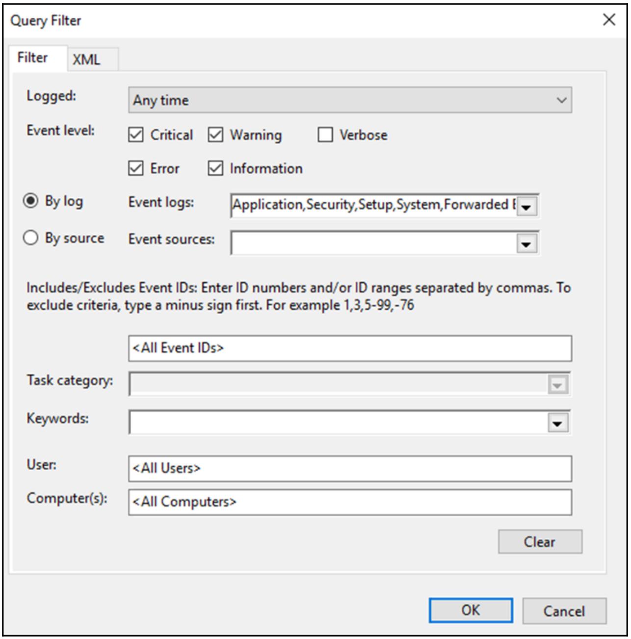 Обозреватель событий позволяет создавать Индивидуальные представления (Custom Views) на основании уровня события, времени, типа регистрации, типа источника, идентификатора события, категории задачи, ключевых слов, пользователей или компьютеров. Обозреватель событий перехватывает тысячи разнообразных событий. Применяя Custom Views, мы можем фильтровать события и получать доступ к нужным нам сведениям. Все такие индивидуальные обзоры будут перечисляться в разделе Custom Views. Он также имеет предварительно заданные индивидуальные обзоры.