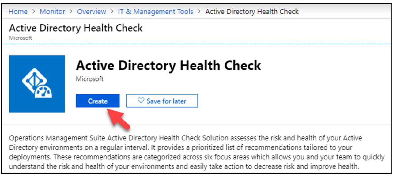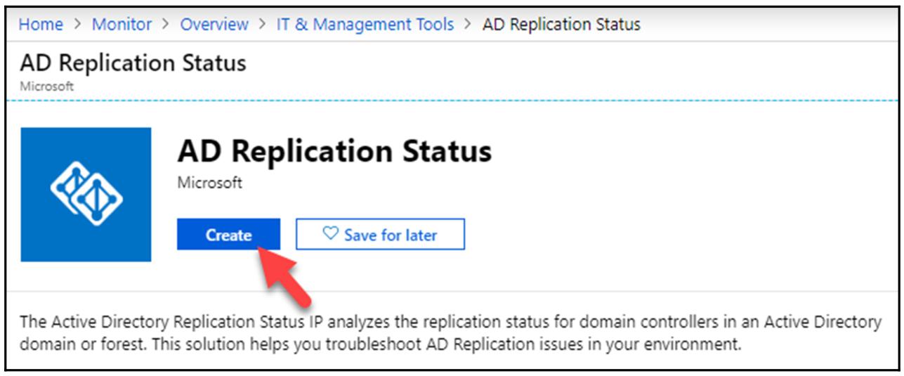 Это загрузит необходимую страницу решения. Для добавления этого решения в Монитор Azure кликните по Create, как это показано на идущем далее снимке экрана: