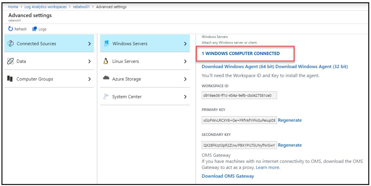Через несколько минут, перейдя в Advanced Settings | Connected Sources | Windows Servers мы можем обнаружить приводимый ниже снимок экрана в котором вновь добавленные серверы подключены в качестве источников сведений: