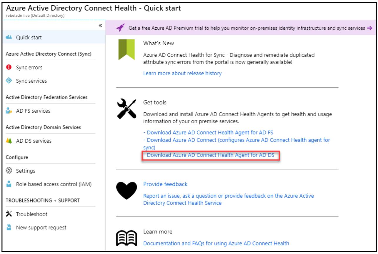Во вновь полученном окне кликните по Download Azure AD Connect Health Agent for AD DS, как на снимке экрана далее: