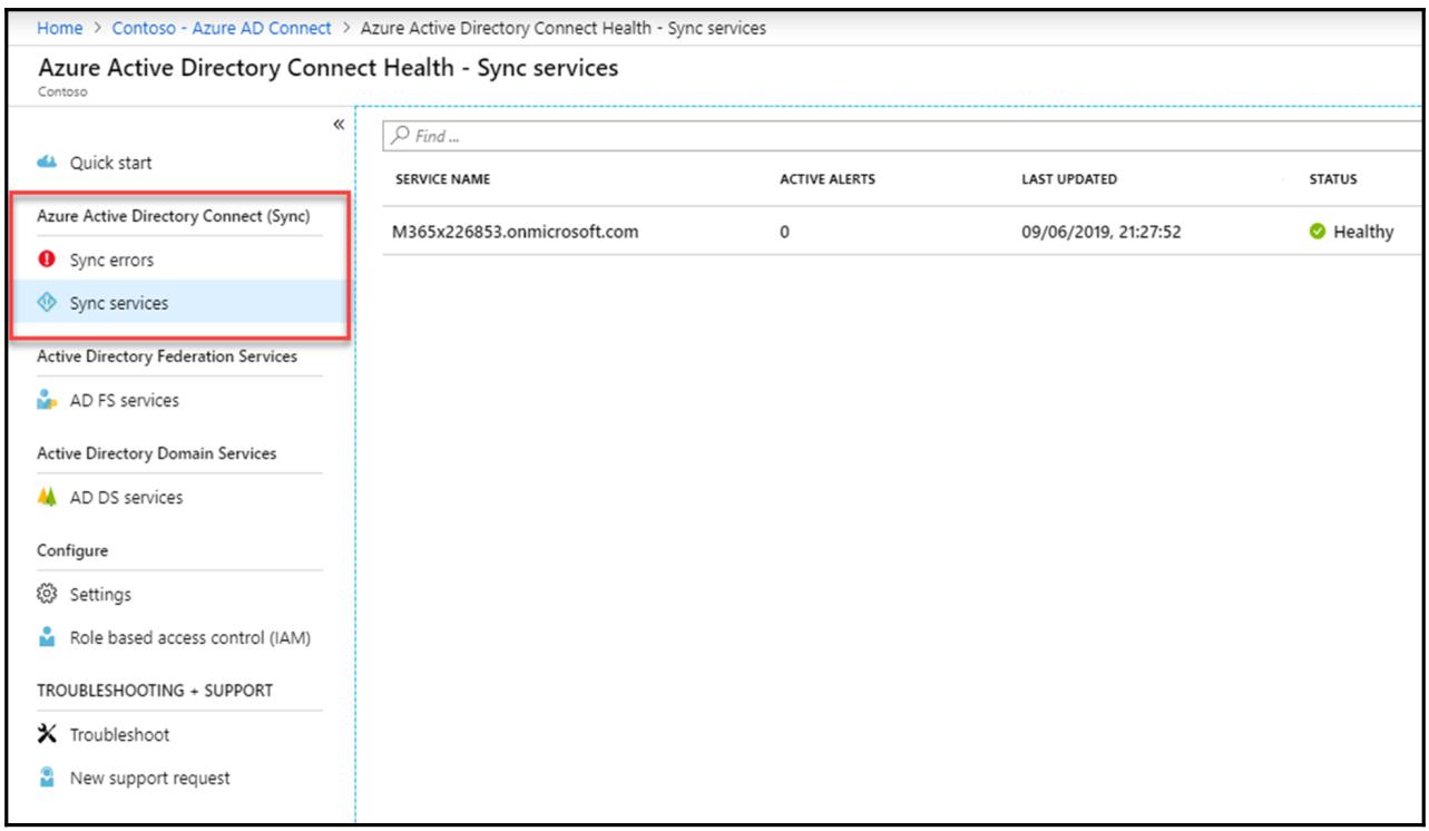 В своей предыдущей главе мы изучили что из себя представляет Azure AD Connect и как он работает в гибридной среде Azure AD. Azure AD Connect отвечает за синхронизацию между Azure AD и локальным AD. Следовательно важно отслеживать состояние жизнеспособности службы Azure AD Connect чтобы быть уверенным что он работает как ожидалось. В вычислительной инфраструктуре в определённый момент времени может быть активным лишь один экземпляр Azure AD Connect, поэтому на жизнеспособность данной службы оказывается большая нагрузка. Такая служба Azure AD Connect является службой Windows, поэтому для отслеживания состояния этой службы имеется множество инструментов, например SCOM и Монитор Azure. Однако даже когда эта служба поднята и запущена, это ещё не означает жизнеспособность синхронизации.