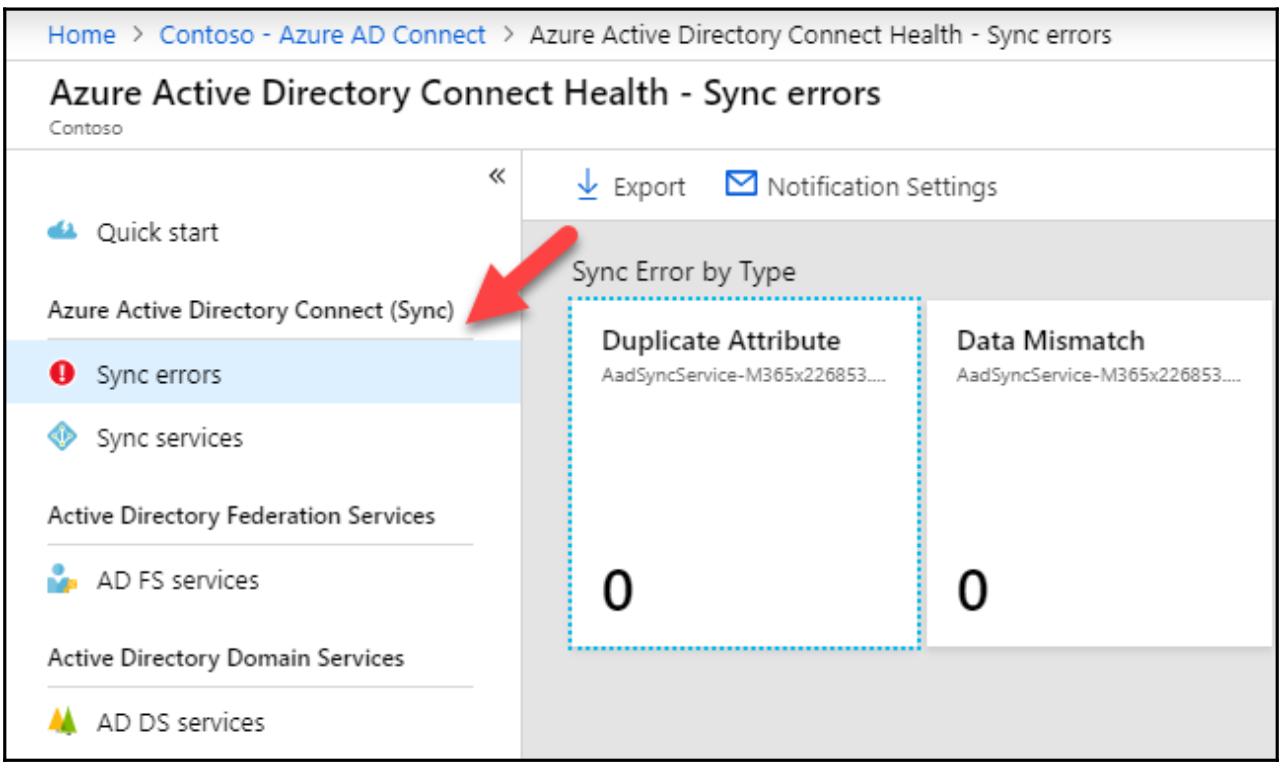 Для отслеживания жизнеспособности Azure AD Connect имеется служба Azure AD Connect Health, поставляемая в Azure AD Premium. Azure AD Connect Health способна выполнять мониторинг следующих типов ошибок синхронизации: